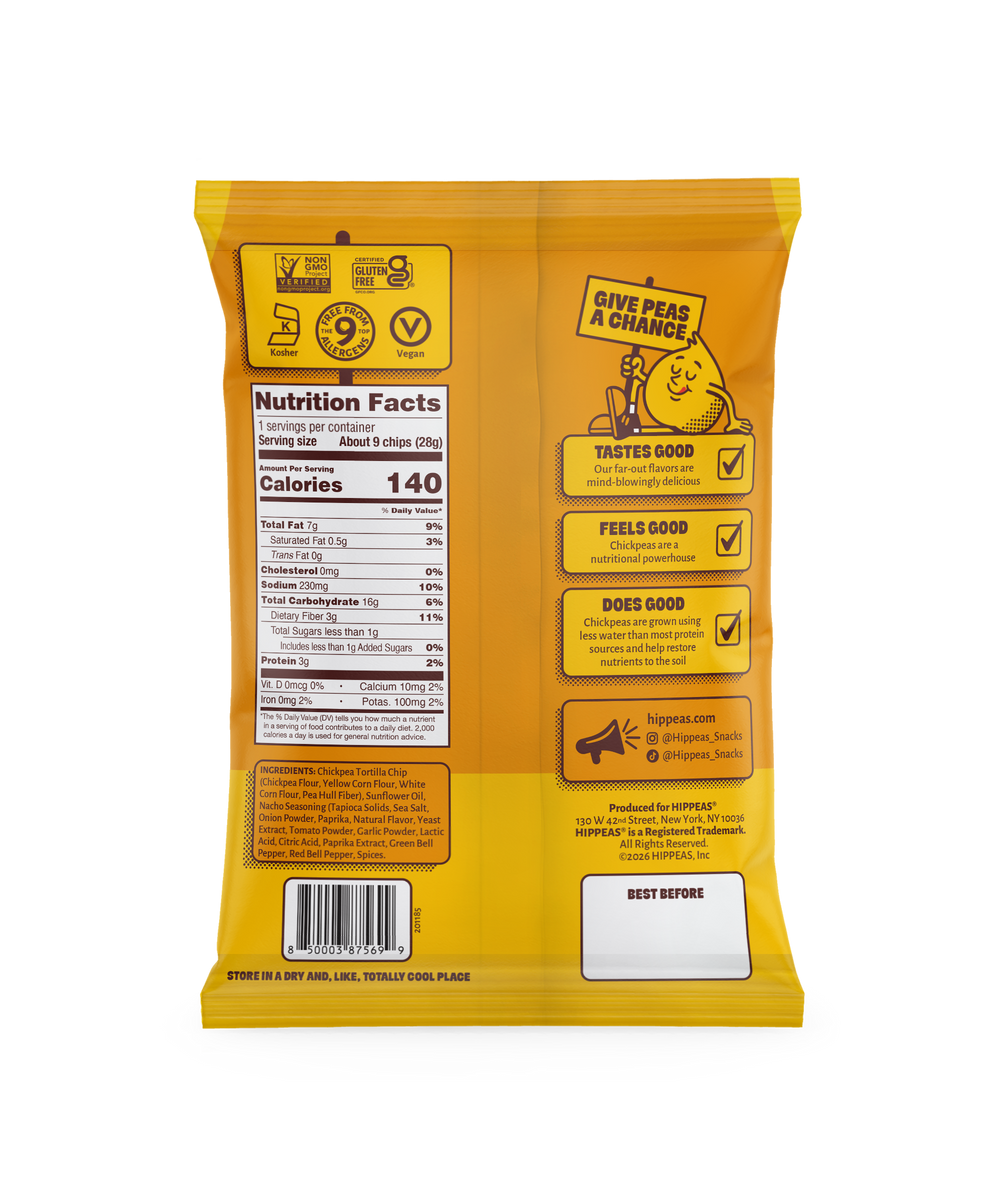 Hippeas Vegan Nacho Vibes Chickpea Tortilla Chips 1oz (21ct)