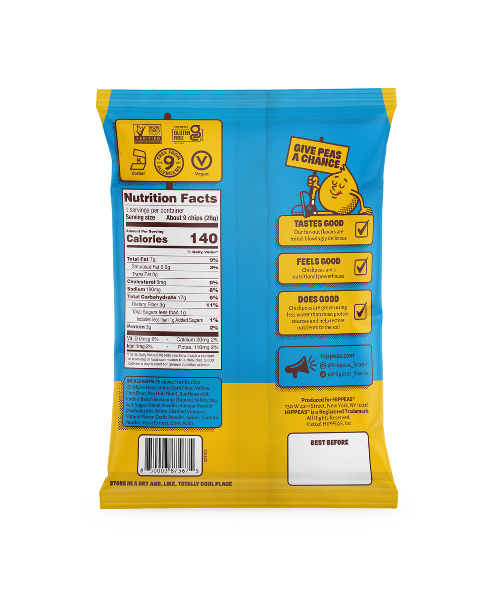 Hippeas Vegan Rockin' Ranch Chickpea Tortilla Chips 1oz (21ct)
